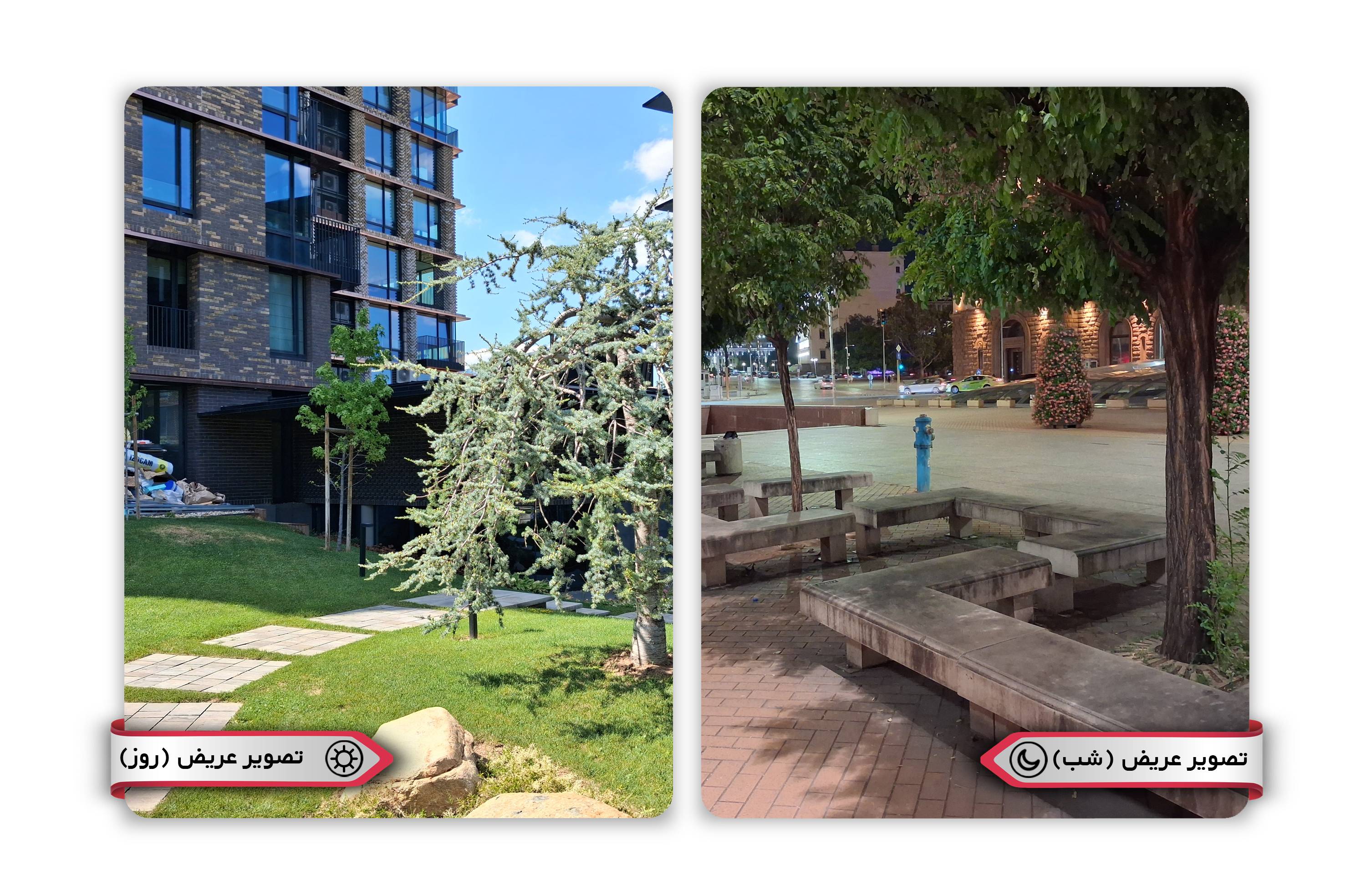 در نور شب، دوربین اصلی در حالت عادی تصاویری عمدتاً چشمگیر ثبت نمیکند و با محدودیت دامنه دینامیکی، کمی نویز و کنتراست پایین مواجه است. اما خوشبختانه، فعال کردن حالت شب (Night Mode) بیشتر این مشکلات را برطرف میکند؛ حالت شب به تصاویر رنگ بیشتری میافزاید، کنتراست و وضوح را بهبود میبخشد و نویزها را به خوبی برطرف میکند. دوربین فوق عریض در شب عملکرد بسیار ضعیفی دارد و استفاده از آن توصیه نمیشود.