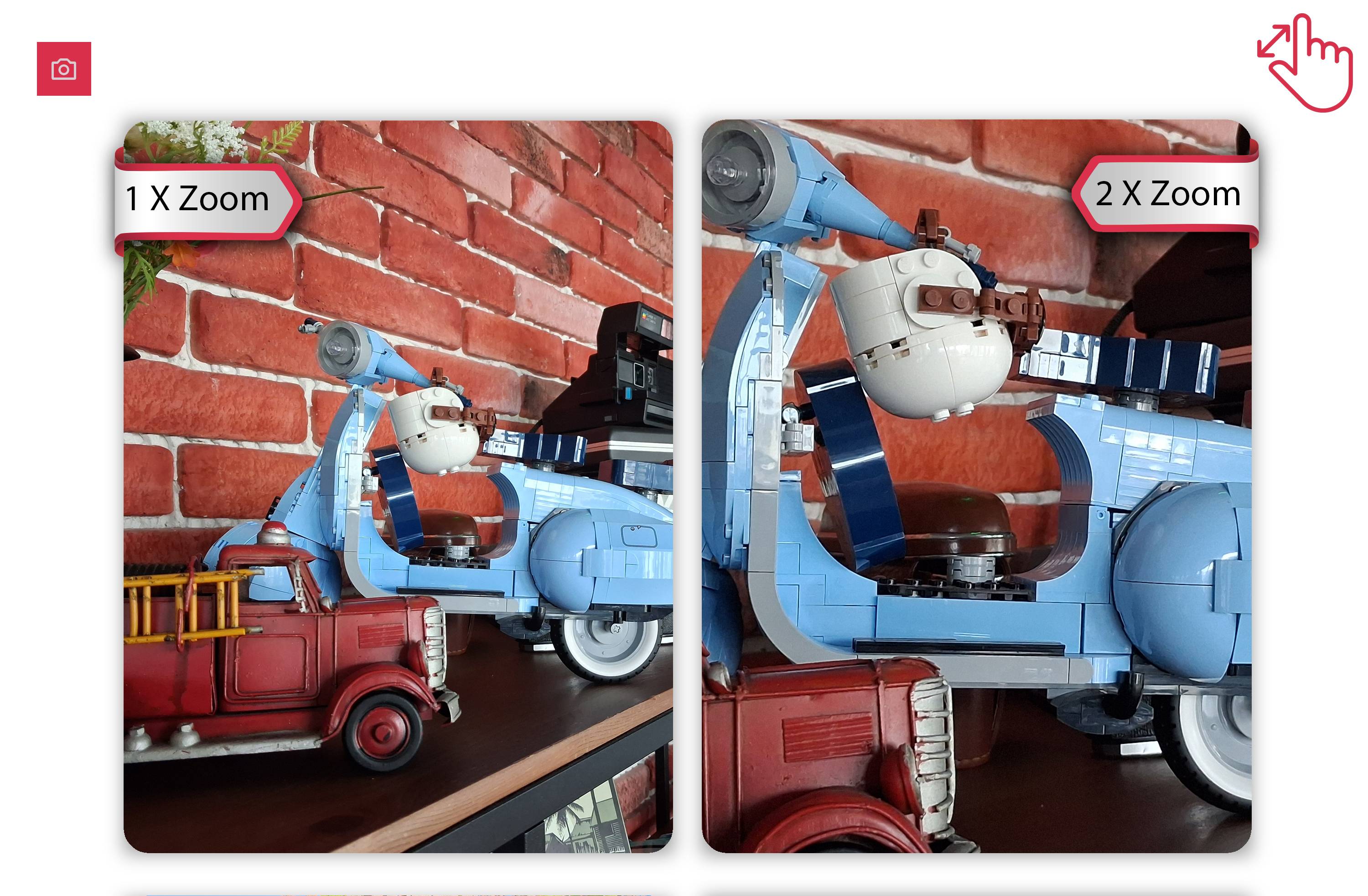 این گوشی فاقد لنز تلهفوتو است و برای زوم، از برش دیجیتال سنسور اصلی استفاده میکند. همانطور که انتظار میرود، عکسهای زوم ۲ برابری به طور قابل توجهی نرمتر، پر نویزتر و با جزئیات کمتری نسبت به حالت عادی ثبت میشوند. این افت کیفیت در نور شب بسیار شدیدتر است و استفاده از زوم ۲ برابری در تاریکی توصیه نمیشود.