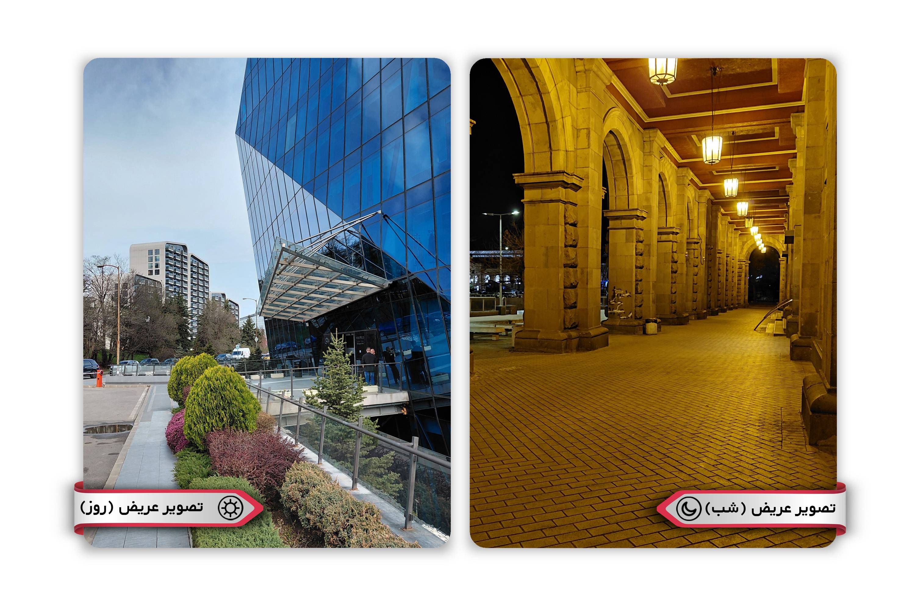 در شرایط نور کم، دوربین اصلی عملکرد قابل قبولی دارد. حالت شب خودکار گوشی، چندان تهاجمی عمل نمی‌کند، بنابراین بهتر است به صورت دستی حالت شب را فعال کنید. فعال کردن حالت شب به طور مشخصی به حفظ جزئیات در نقاط پرنور (مانند چراغ‌ها) کمک کرده و نویز را بسیار کاهش می‌دهد. البته، در حالت عادی (بدون حالت شب)، ممکن است جزئیات ریز کمی بهتر ثبت شوند، اما در عوض نویز بسیار بیشتری خواهید داشت. دوربین فوق عریض نیز در شب با فعال کردن حالت شب، نتایج تمیزتری ارائه می‌دهد، هرچند که در کل، عملکرد آن در نور کم محدود است.