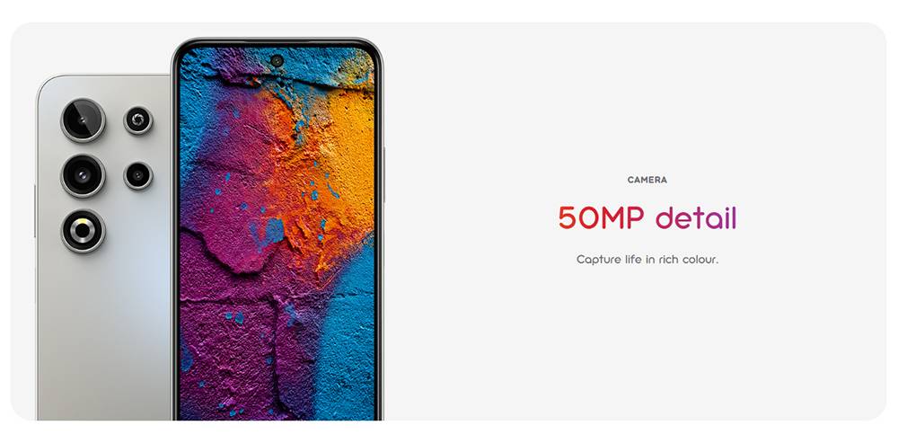 نقطه قوت بزرگ بدنه این گوشی، کسب گواهی IP54 است. این استاندارد، C50 را در برابر پاشش آب و نفوذ گرد و غبار مقاوم میسازد و این یعنی در روزهای بارانی هم میتوانید با گوشی خود عکاسی کنید؛ ویژگیای که در این رده قیمتی یک مزیت رقابتی مهم محسوب میشود. حسگر اثرانگشت نیز طبق انتظار روی لبه کناری قرار گرفته و سرعت و دقت بالایی در بازگشایی قفل صفحه دارد. نمای جلویی هم با یک نمایشگر بزرگ و حفره دوربین، حاشیه نسبتا کمی دارد و یک طراحی مدرن را به نمایش میگذارد.